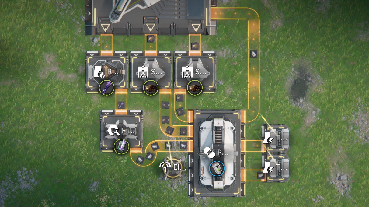The game also gives you some basic blueprint when doing Simulations (Factory Tutorials) and they are really helpful for beginners. It allows you to easily set up new production lines based on your needs and they include icons to tell you exactly what you need to “feed” in each lane.