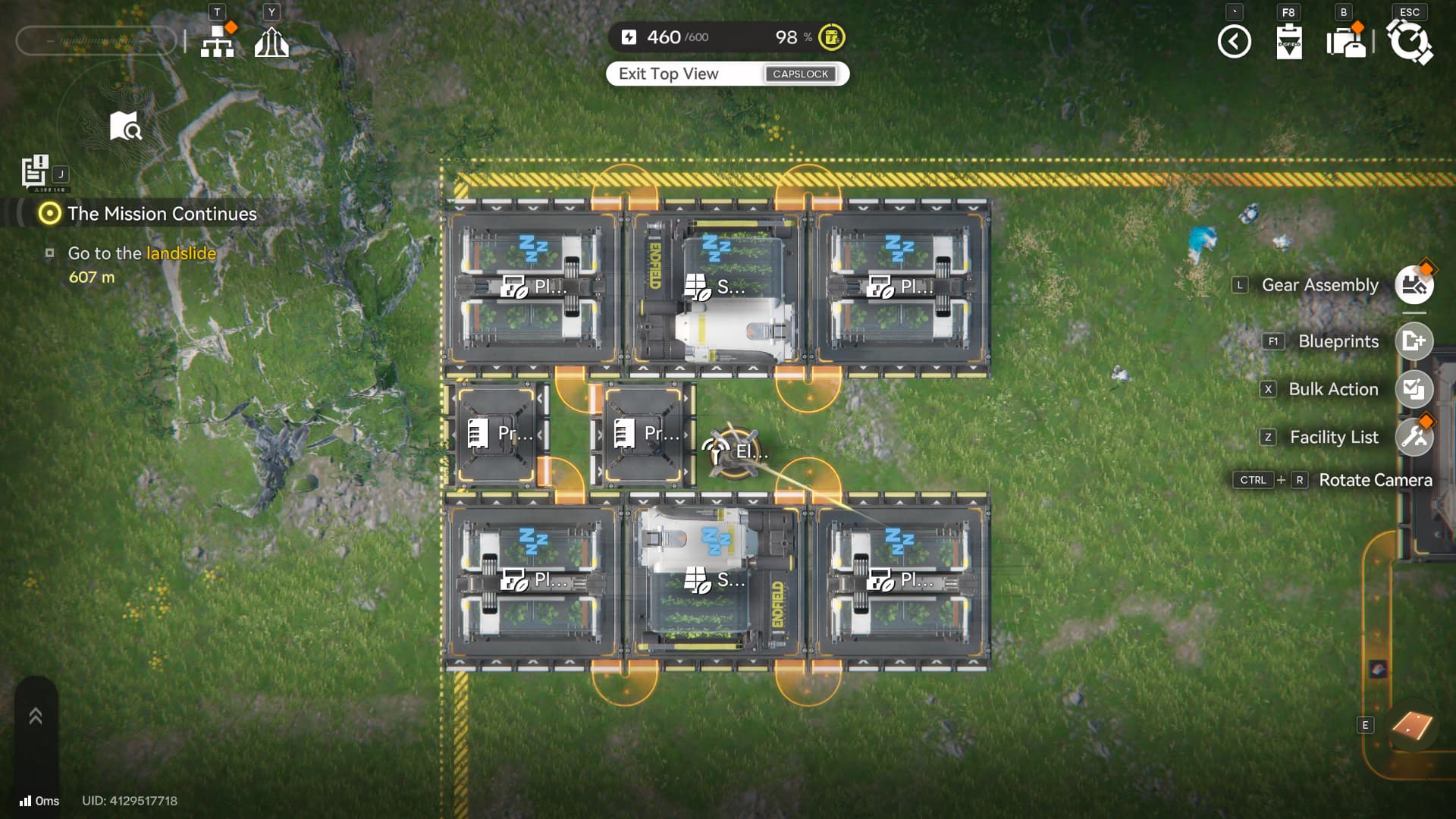 - When starting to interact with your factory, make sure to set up production lines for Buck Capsules, Industrial Explosives and Batteries. These are the most important for outpost development, world exploration and scaling up your Core AIC.