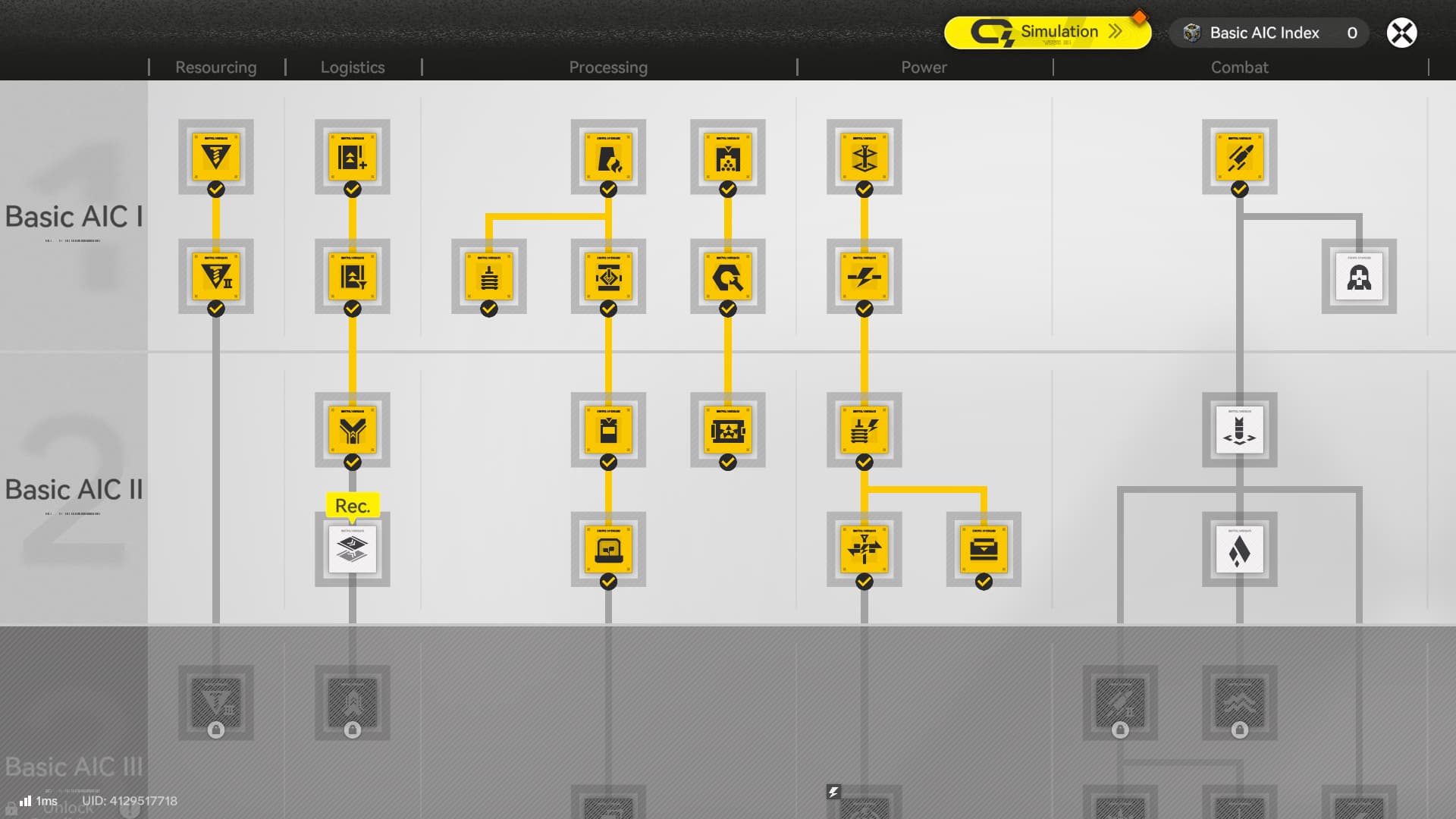 After progressing in the main story and unlocking the second row (Basic AIC II), prioritize the following nodes: