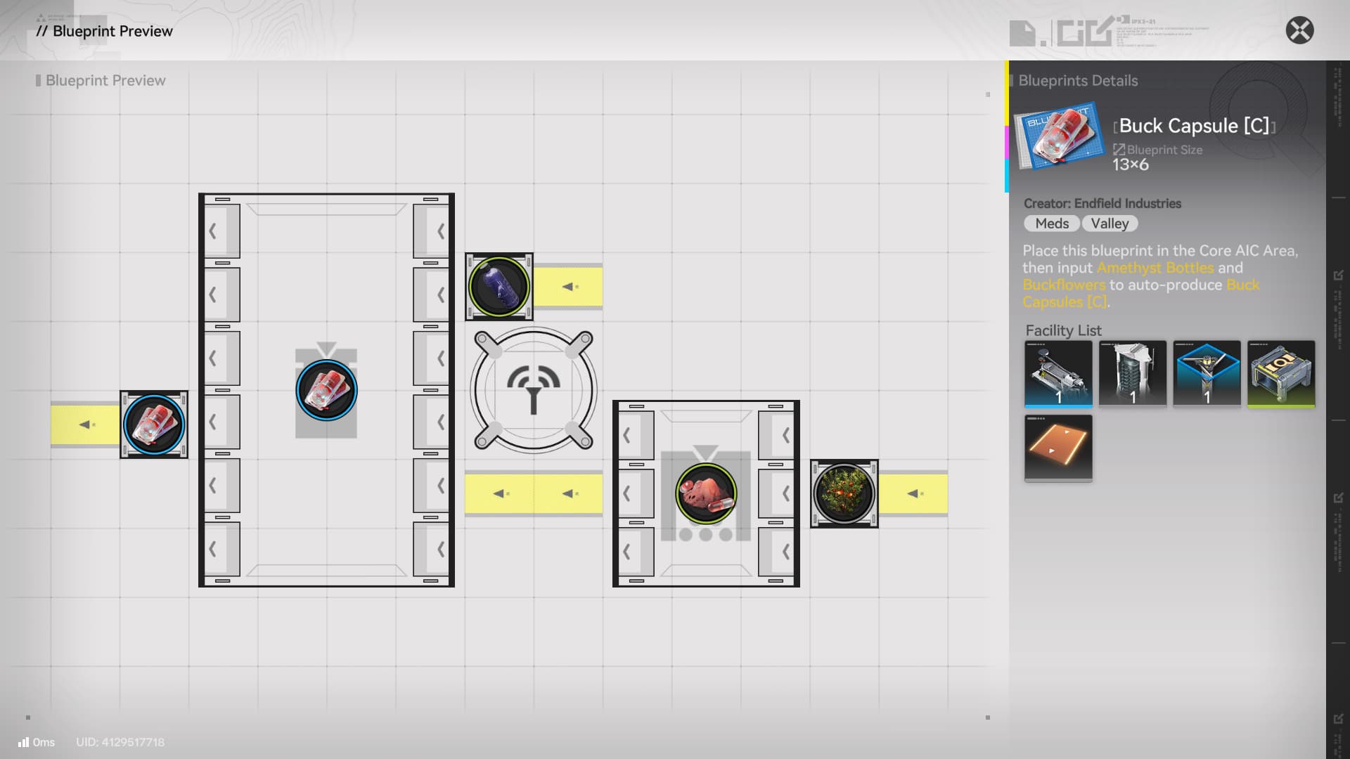Remember the Buck Capsule [C] Recipe we talked about? It’s time to put some of the tech you unlocked into practice and start crafting it. The above layout is a self-sustainable plant farm. It uses 2 Planting Units for 1 Seed Picking Unit, this allows you to produce plants for the Seed Picking Unit while still producing extra plants that go back to your AIC Depot through the Protocol Stashes.