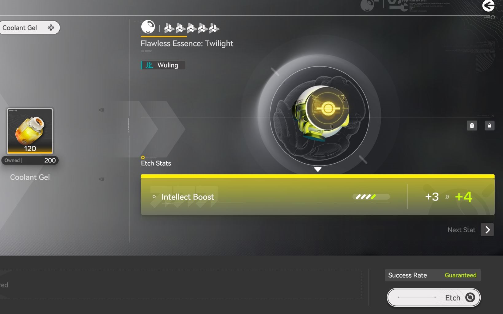 The Coolant gel is the guaranteed upgrade, a pity system that could carry over. When we do not success when upgrading with an essence we get 10 coolant gel and the amount of gel we need to guarantee an upgrade is increasing exponentially with later upgrades