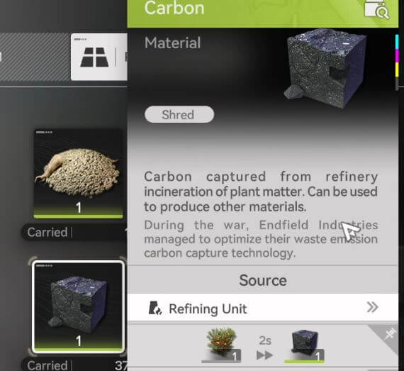 Recipe For Carbon = Buckflower Into Refining Unit (Factory)