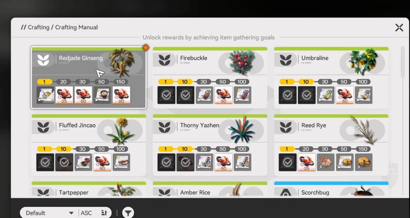 We unlocks Redjade Ginseng crafting system upon collecting it for the First Time. Two Redjade Ginseng plants can be found this way.