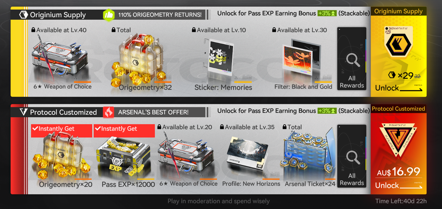 BEST For Value, as we get 32 Origeometry back after reaching BP level 60, also tons of free loots