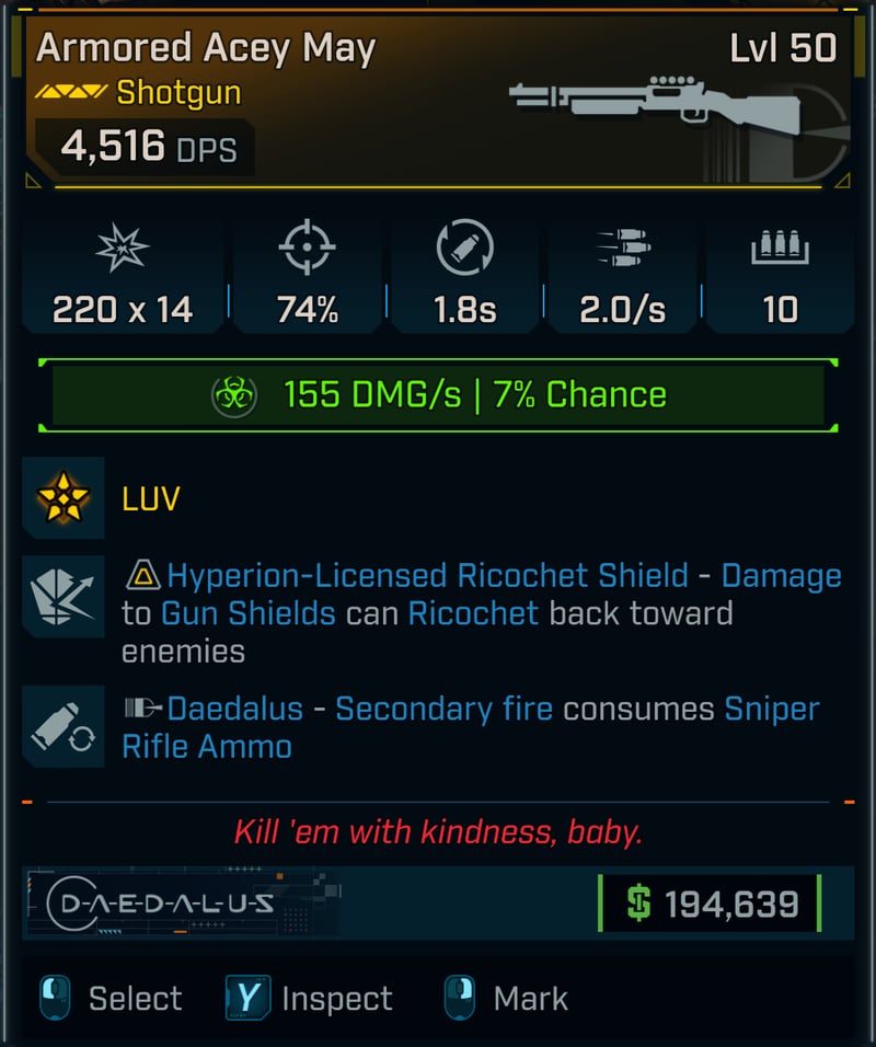 Can be found in the Elements: Kinetic , Fire , Shock , Corrosive