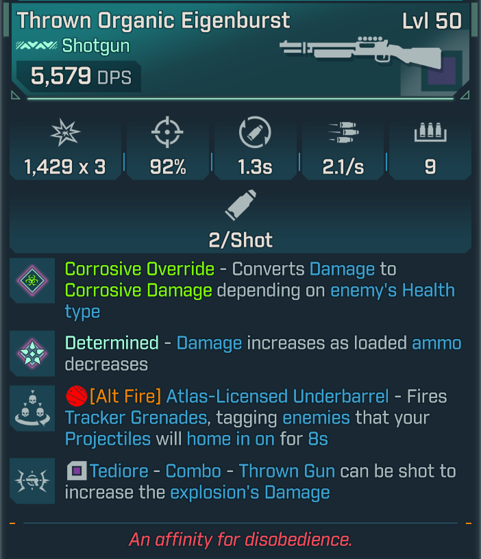 The Eigenburst is a Pearlescent Tediore Shotgun.