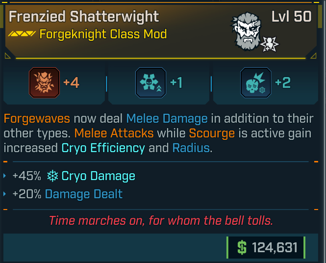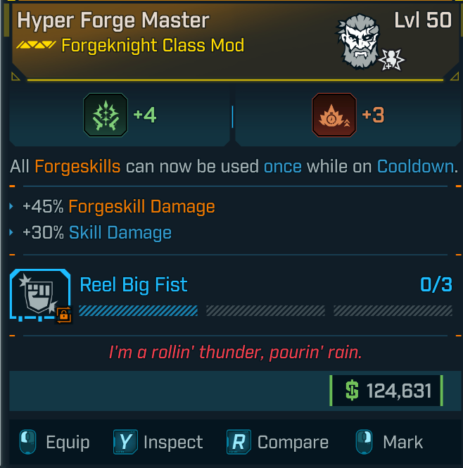 Each class mod also has 1 fixed passive stat and 1 that can randomise - and for the Blacksmith class mod, the fixed stat is forgedrone duration. Pretty handy right?