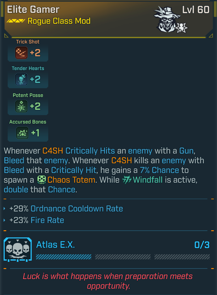 C4SH kills an enemy with Bleed with a Critical Hit, he gains a 7% Chance to spawn a Chaos Totem. While