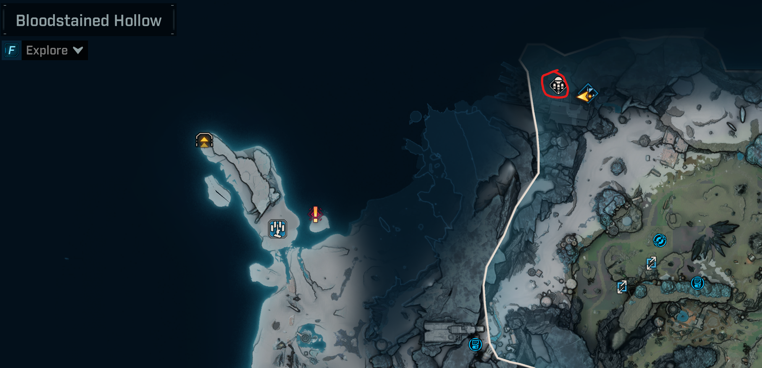 Just North you'll find "The Gurgling Stent" walk through the Bloody Water fall and you'll fight through an onslaught upon defeating all the enemies the boss "Big Oil" will spawn.