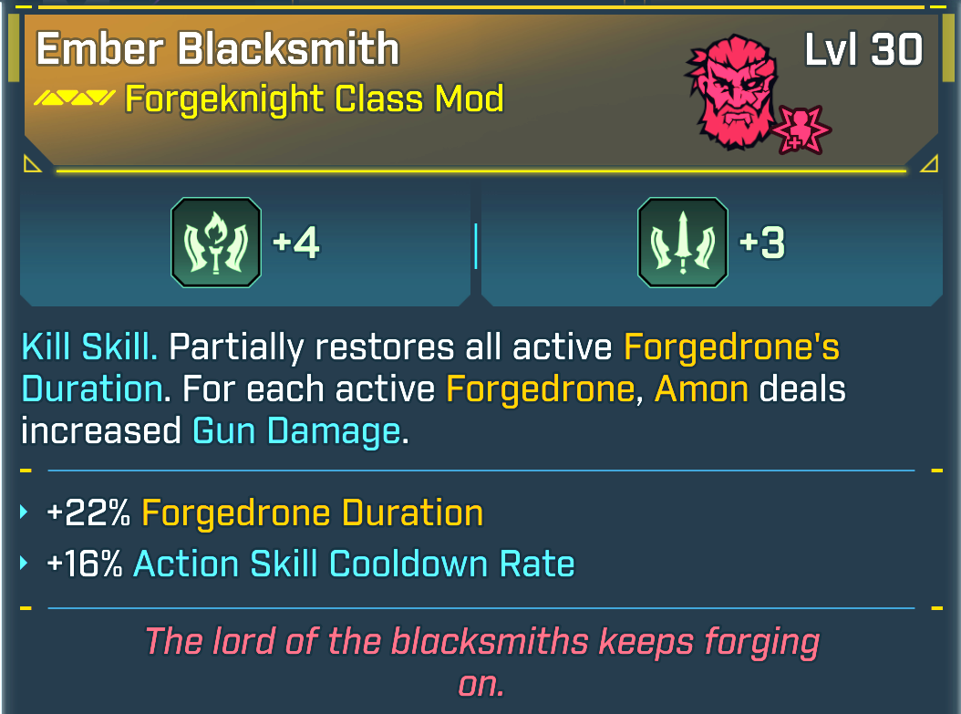 Amon has got 6 Legendary Class Mods that have Set Powers and allow New Playstyles to be unlocked, whilst coming with a range of Set Skills assigned to them.