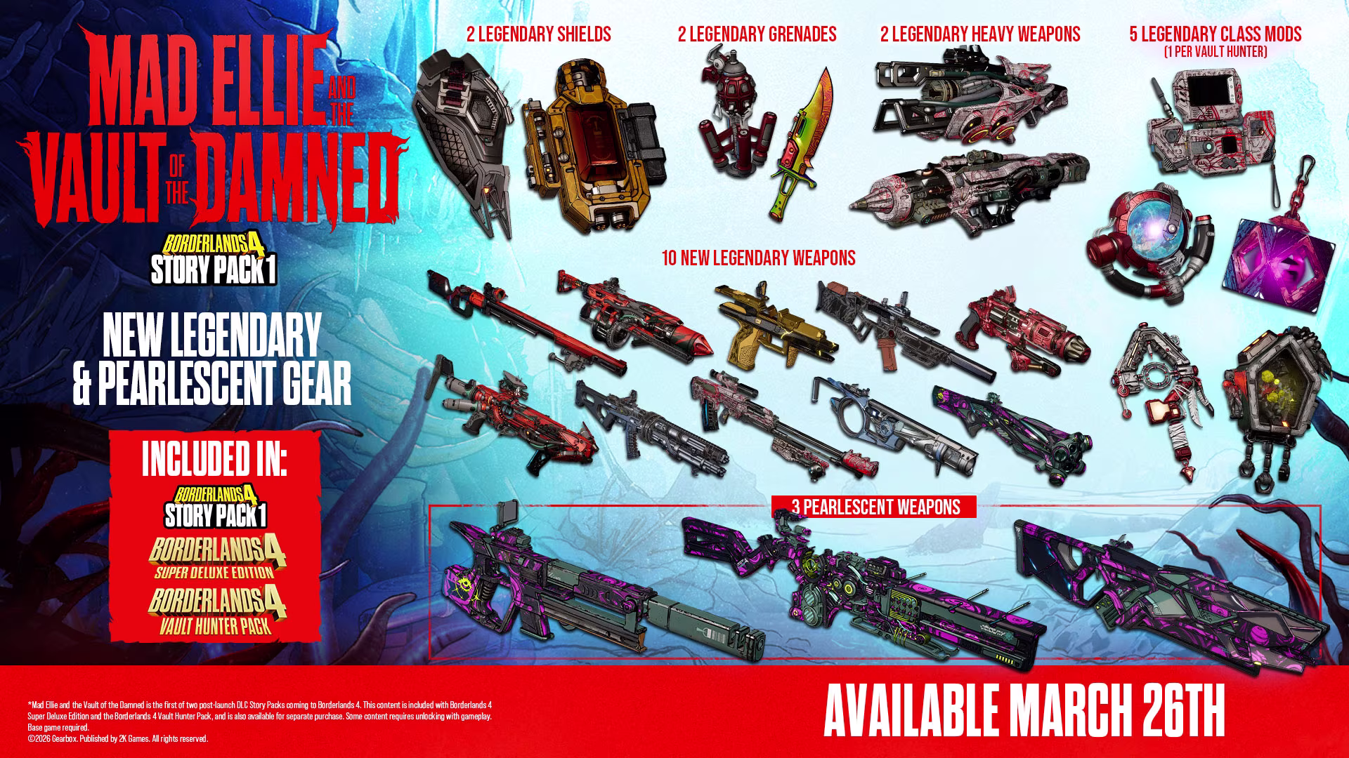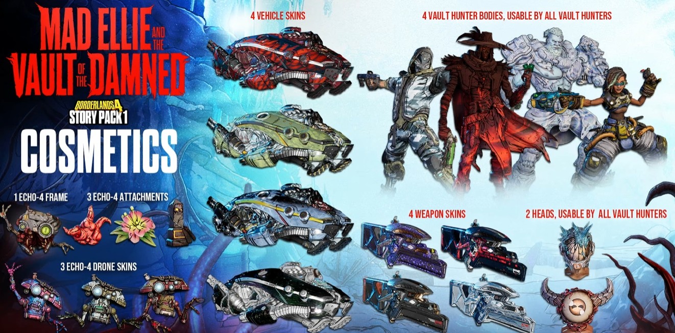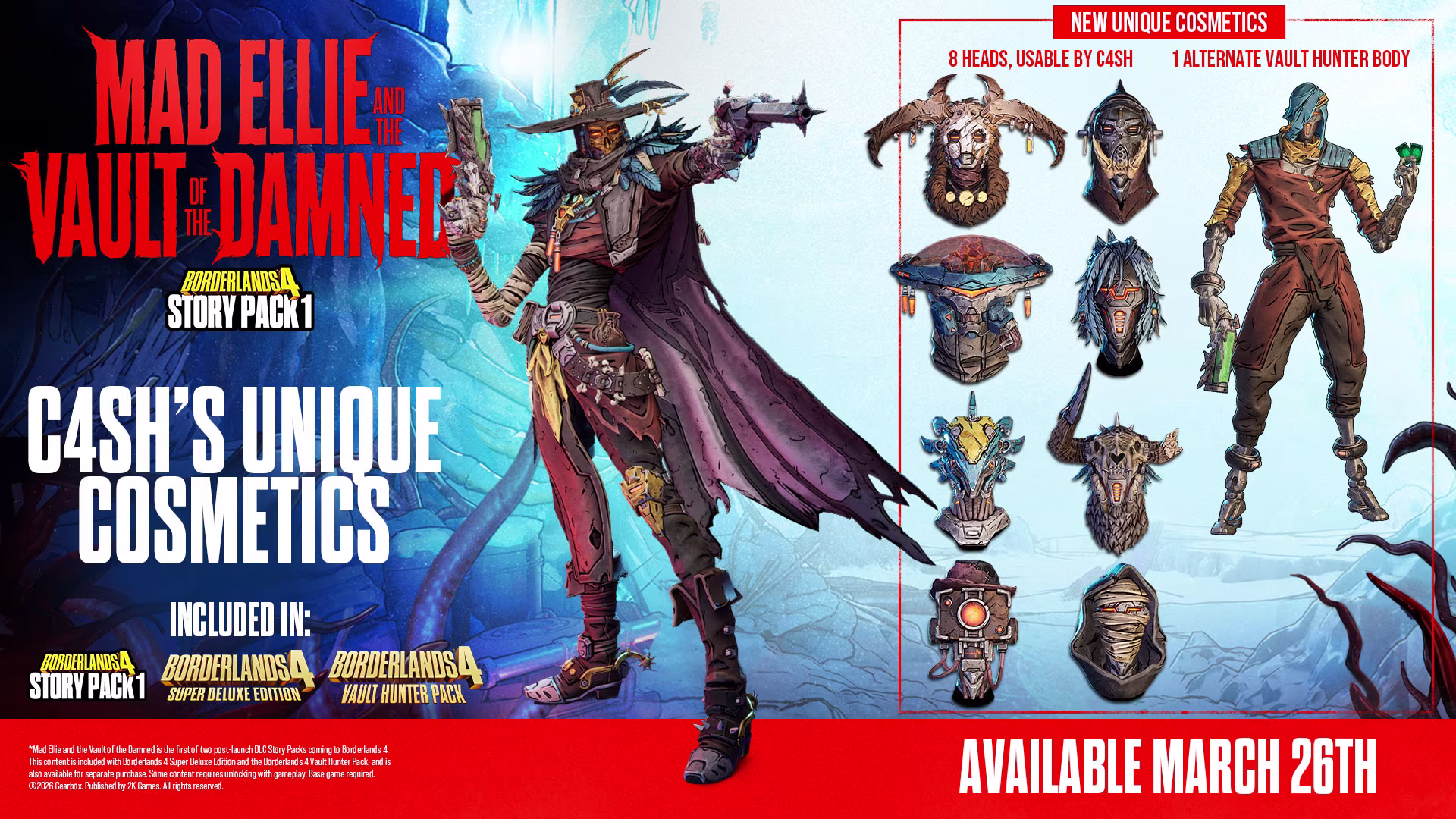 Story Pack 1: Mad Ellie and the Vault of the Damned is the first of two planned Story Packs coming to Borderlands 4 on March 26th, 2026. The Story Pack DLC will be set in a new, unique region known as the Whispering Glacier. With it, comes the release of C4SH the Rogue, a new playable Robot Vault Hunter.
