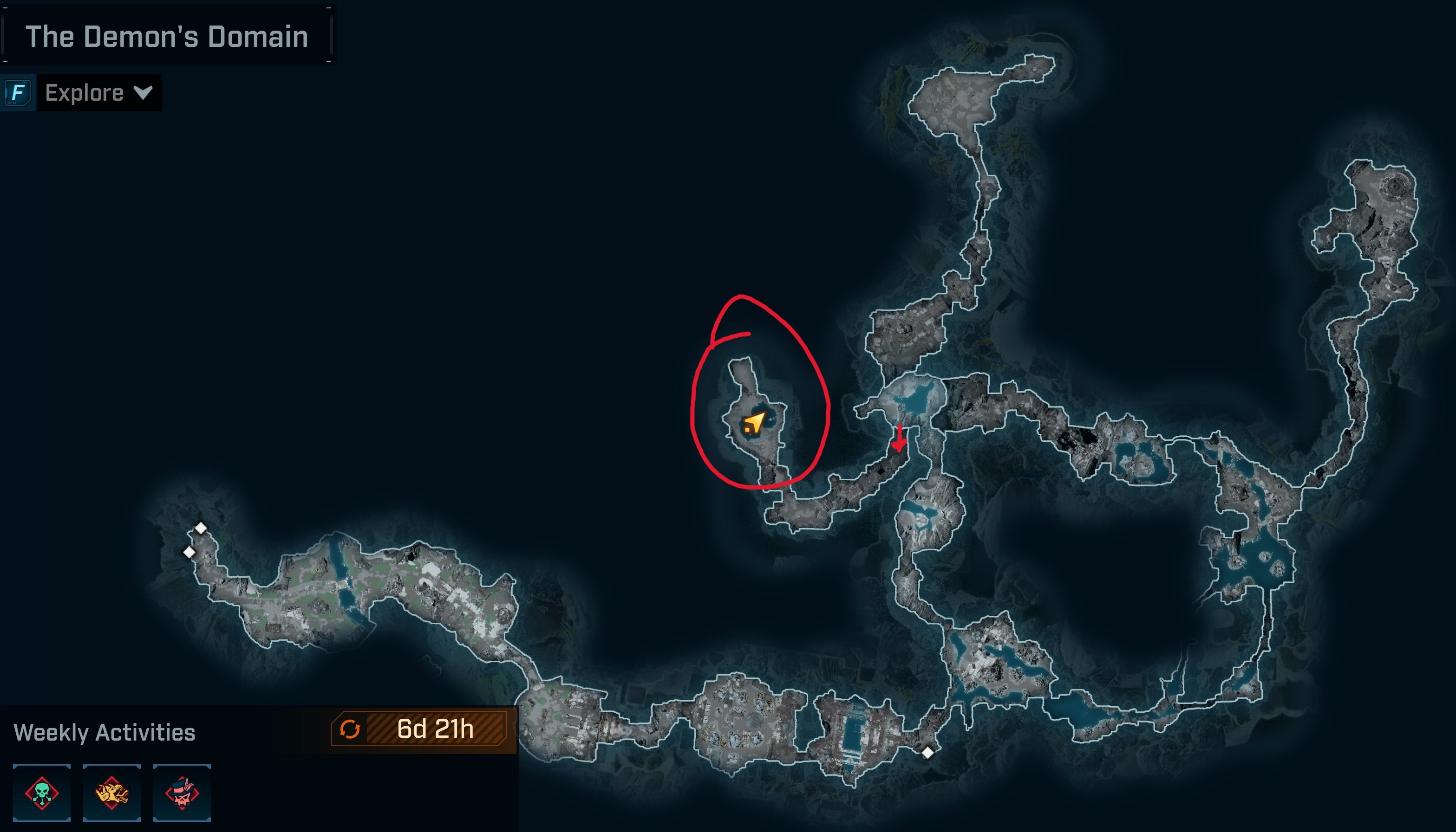Progress through the "Legend of the Stone Demon" DLC until reaching the upper West area of Demon's Domain, where you will carefully jump down to slightly hidden path.