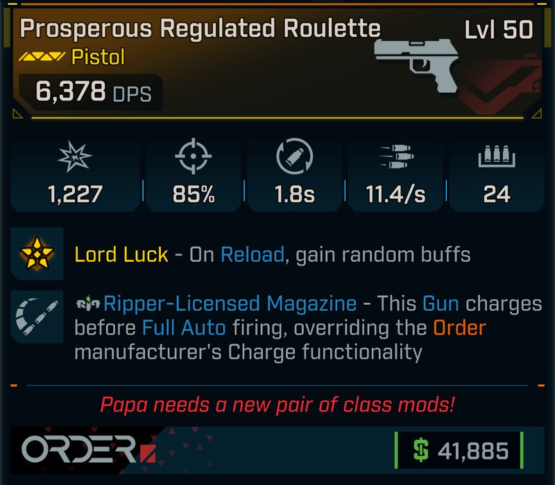 @Roulette Has a Trait that give the player a Random buff on Reload.