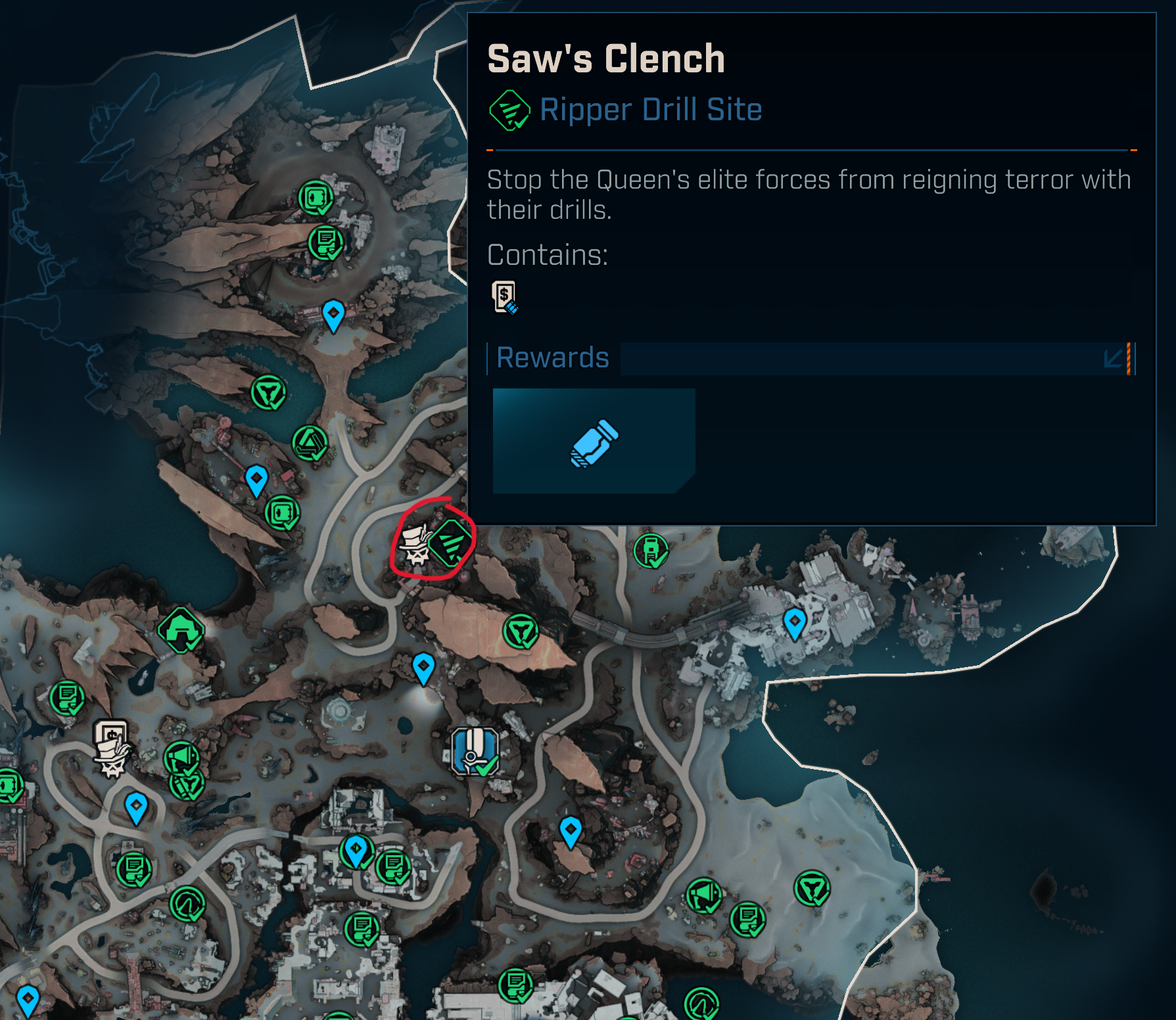 - You will find a Driller Sight, "Saw's Clench "