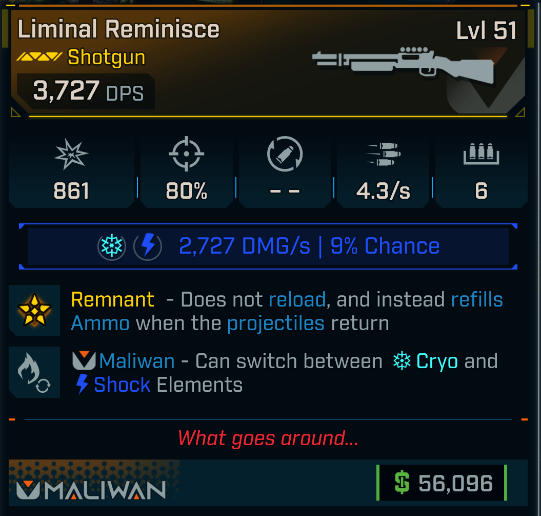 Remnant - Does not reload, and instead refills Ammo when the projectiles return