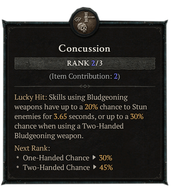 Certain skills, like Concussion, require that a skill use a mace in order to be used. This can be a one-handed or two-handed mace, but either way, you must use one, or this passive will do nothing.