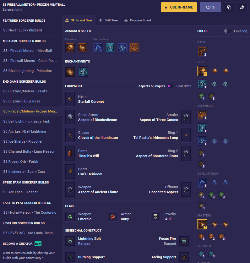 Frozen Meatball, or the “The New Hotness” as our Sorcerer Expert, Lurkin, called it, is the new hot Sorcerer build making use of a new Unique Helmet, “Starfall Coronet,” that changes how Meteors function. Combining these newly buffed Meteors with its Enchantment, which is also buffed from the helmet, looks to be a ferocious combination.