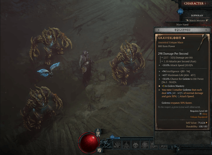 You raise 3 smaller Golems that each deal 40-60% of normal damage and gain 30%[+] Attack Speed. Golems respawn 50% faster.