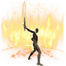 Imbue the sword with bygone golden glory, then fire it at foes. A wide, golden wave fans out forwards, sweeping through all enemies caught in its path.