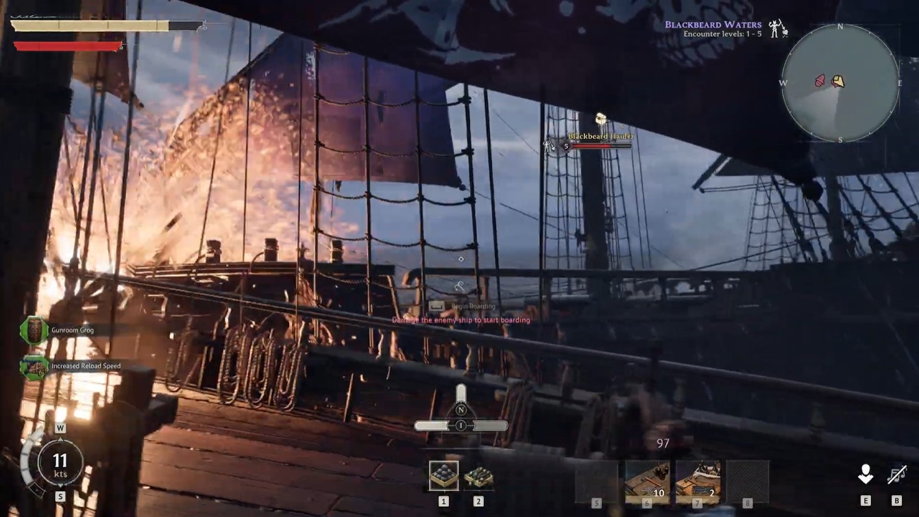 Before engaging enemy sea vessels in combat make sure you've downed that Grog to improve your crews damage, reload speeds, and resilience.