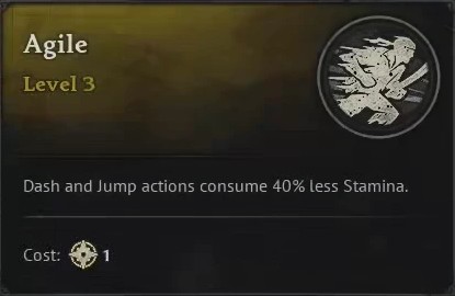 Agile reduces the stamina cost of your dash and jump actions. Dash = dodge, so reducing this stamina cost by almost half is incredibly valuable for keeping yourself alive.