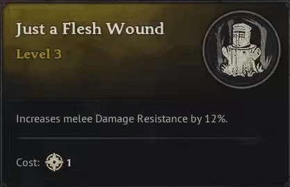 Just a Flesh Wound is probably the least convincing of all the talents in this build. Damage reduction is nice, but as % reduction this is most noticeable against big hits which you really want to avoid anyway. Of course it still goes ways to keeping you alive, and most damage you take is melee, so there's plenty of reason to take this.