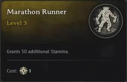 Marathon Runner is simply a boost to your overall stamina. 50 points is significant, and allows you to dodge and attack more often before running out of juice.
