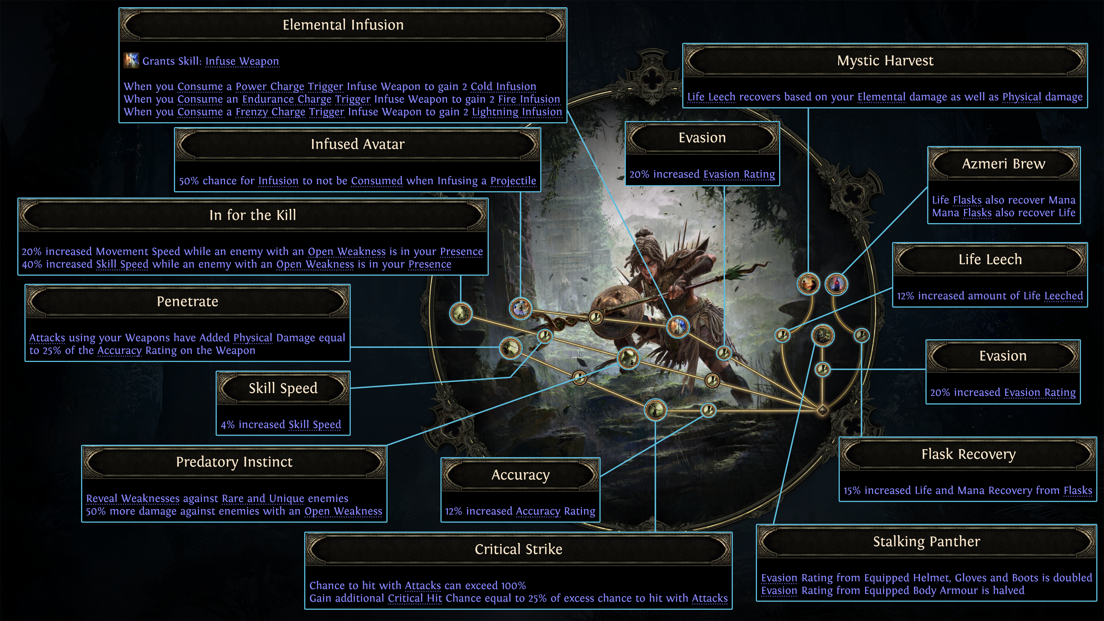 This character will aim to make good use of the Amazon's Critical Strike notable (which GGG have stated adds base critical strike to weapons), can and likely will spec the Penetrate notable depending upon what gear is available, and will experiment with Elemental Infusion. If Elemental Infusion is great, I'll click into Infused Avatar as well.