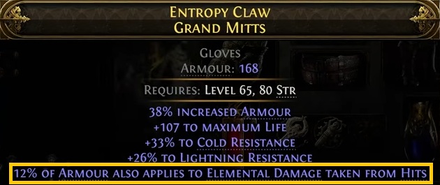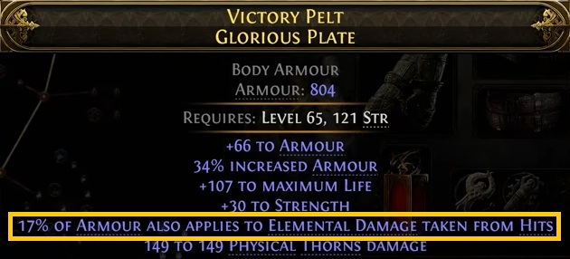 You can now find modifiers on pure Armour-based equipment that will apply a percentage of your total Armour towards mitigating incoming Elemental Damage Hits.