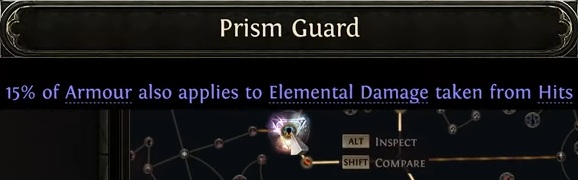 Prism Guard no longer provides maximum Elemental Resistance, instead now applying a percentage of your Armour to Elemental Damage taken from Hits.