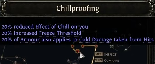 A player can also invest into improving mitigation against specific Damage types utilising their Armour, such as allocating the new Chillproofing Notable or the existing