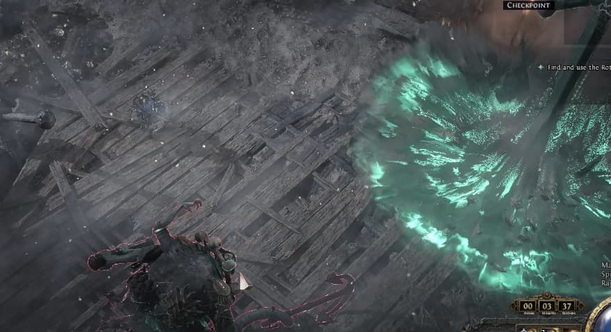 One of the areas on the exterior of the map will contain a yellow checkpoint and the boss, Torrek of the Drowned Fleet, who is unique to this map. You'll need the Rotten Satchel Charge he drops in order to complete the map.