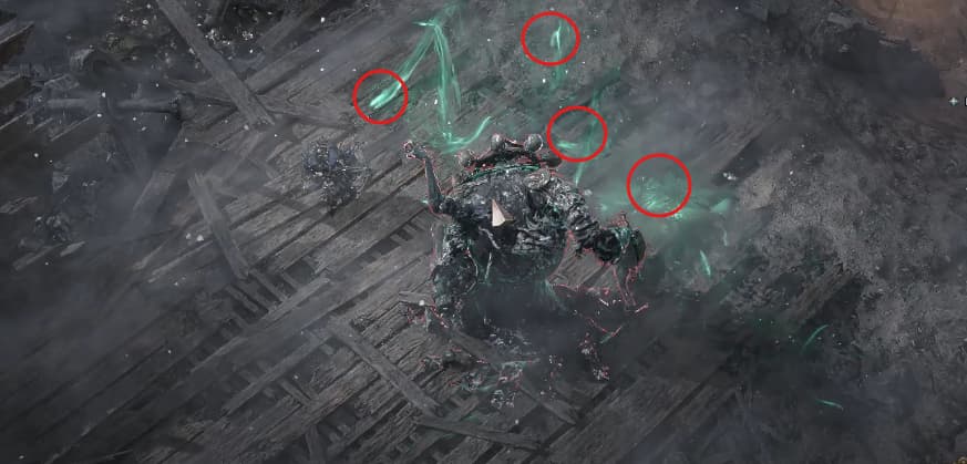 This ability from Torrek can target you anywhere in the arena. He will channel for a few seconds and green souls will erupt from his body, targeting your position though they will take an erratic path to get to you. As long as you are moving constantly in one direction this ability is fairly easy to dodge.