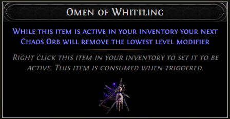Omens of Whittling are also extremely rare and extremely valuable, although they can drop in all Tier 11+ maps. They don't really interact with Fracturing Orbs at all, they are simply an alternative to consider.