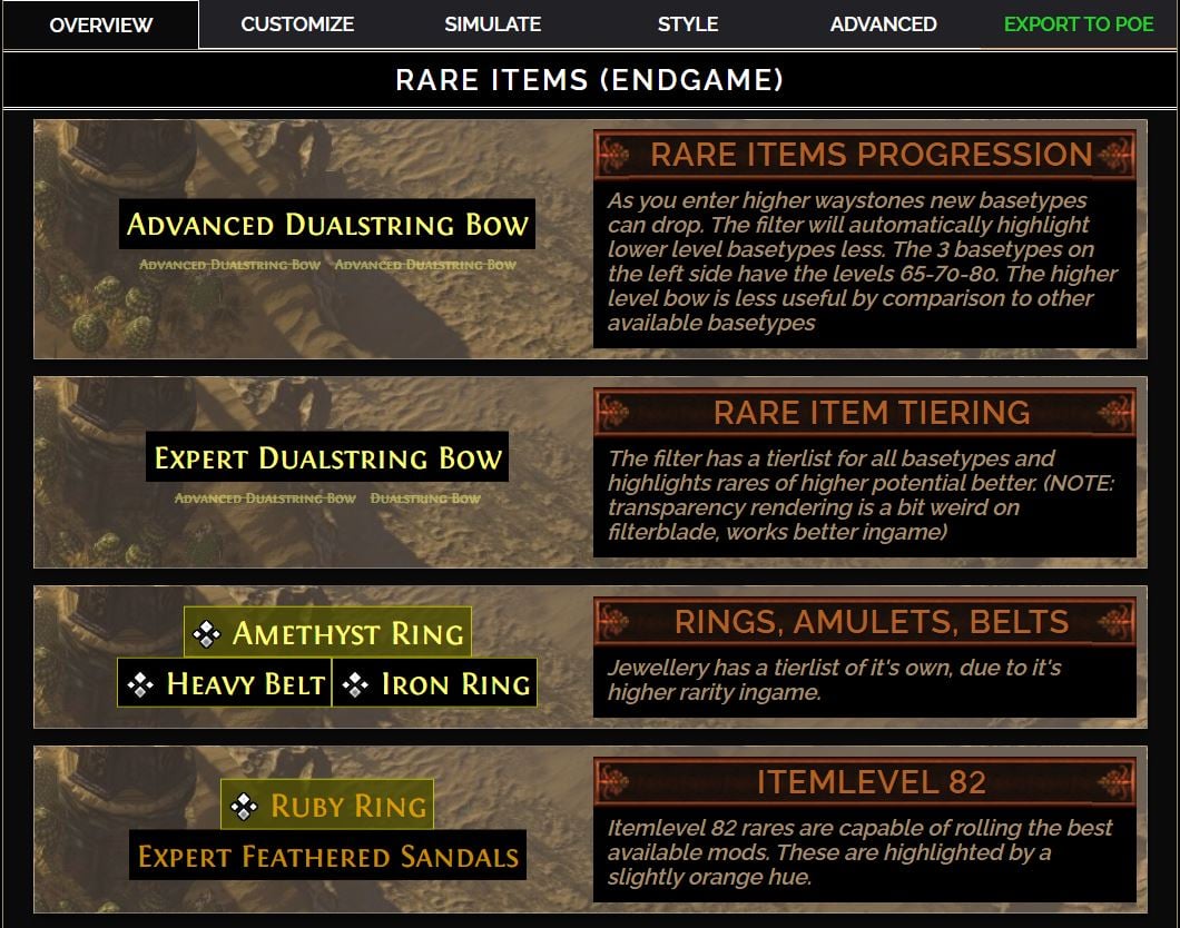 If you already play Path of Exile 1 - all of the principles of Filterblade you may have learned in that game apply here.