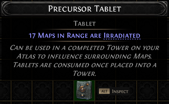 Irradiated (increases Area Level by +1) - acquired by using an Irradiated Tablet on a Tower