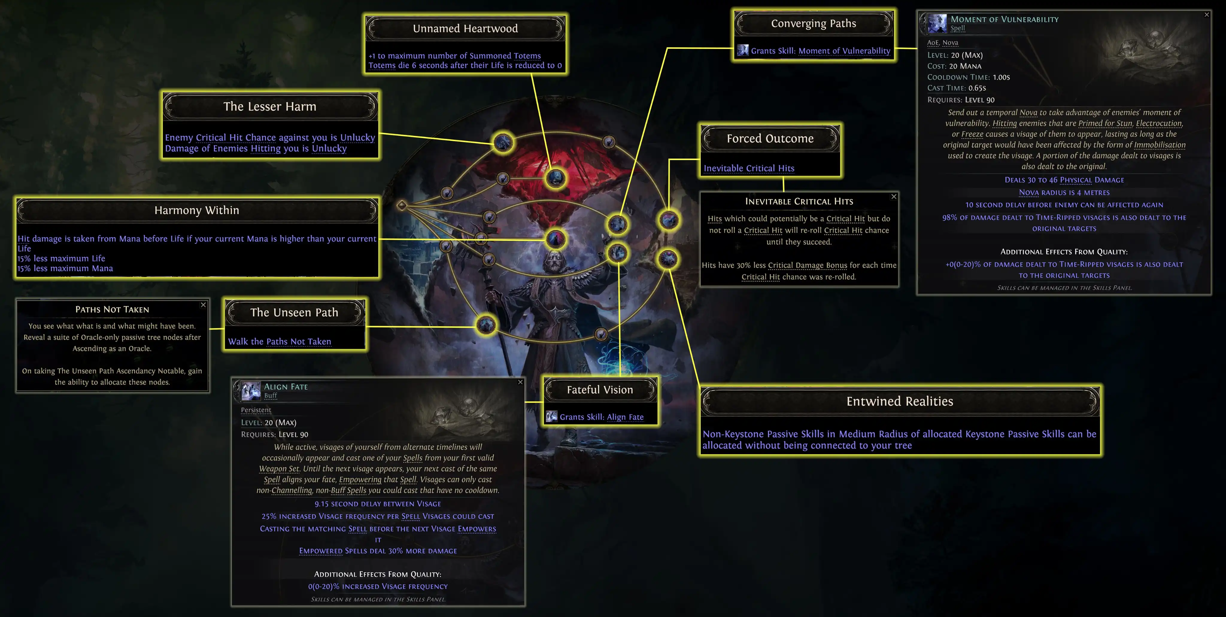 You see what is and what might have been. Reveal a suite of Oracle-only passive tree nodes after Ascending as an Oracle.