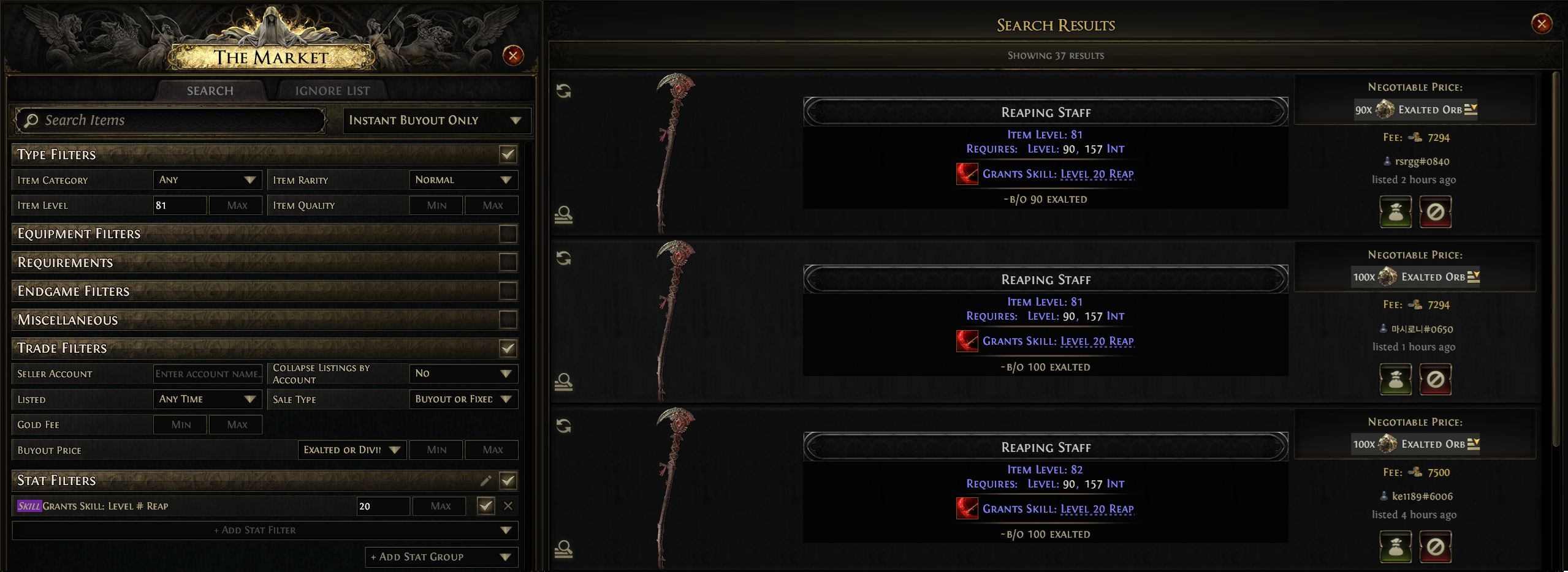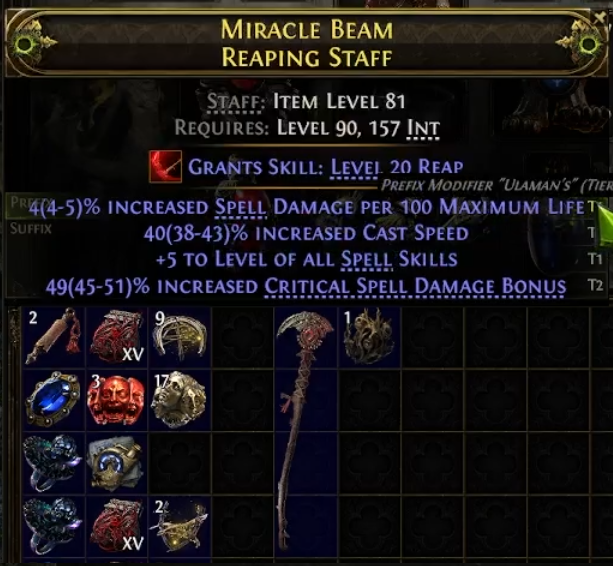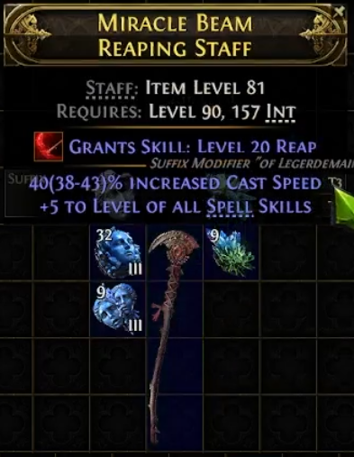 Note: The price of these Staves has skyrocketed since the guide has come out (30-40D for a Normal Rarity i81 Reaping Staff). You can instead buy a Level 20 Reaping Staff, but it doesn't have to be Item Level 81.