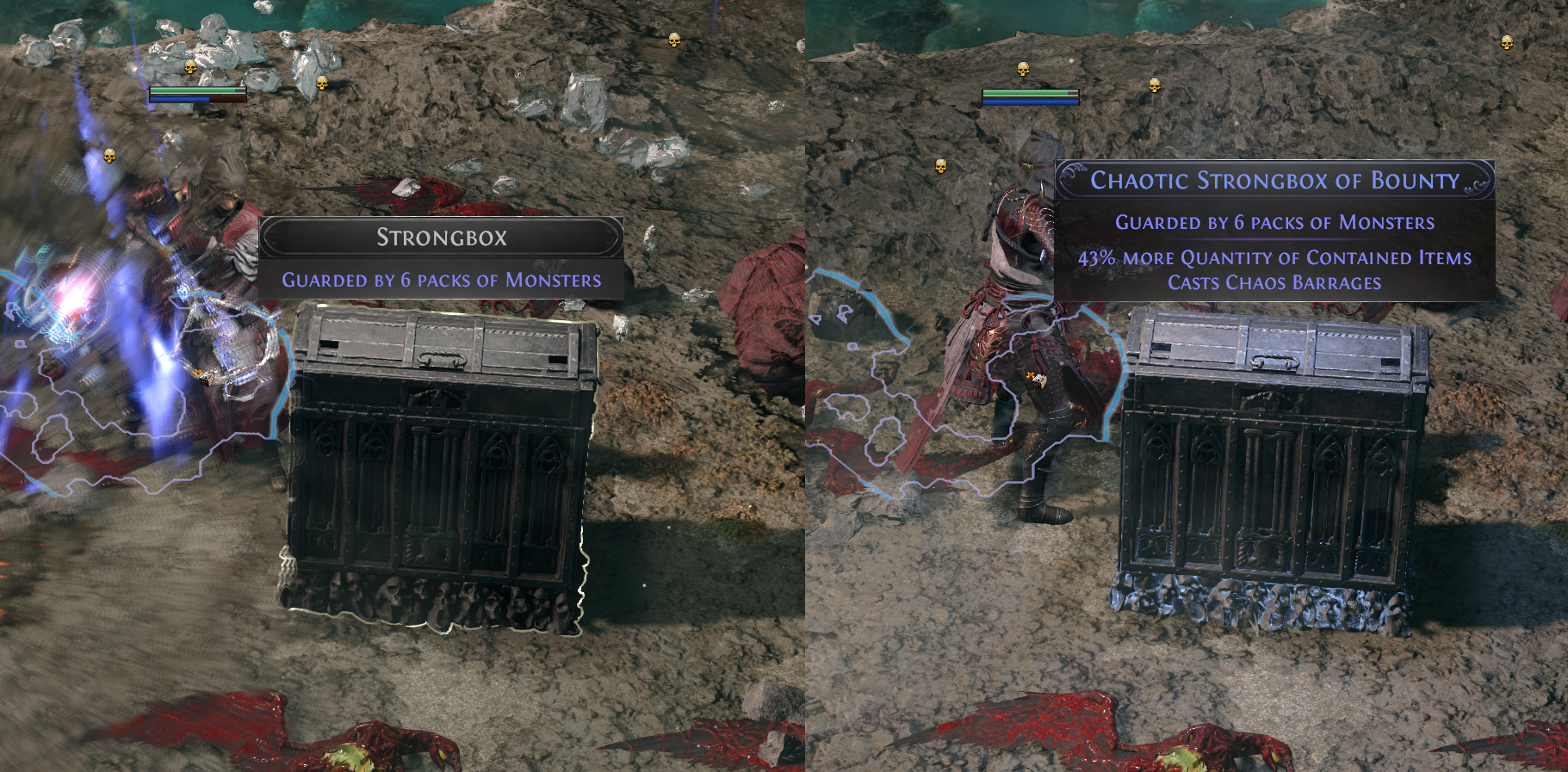 In Path of Exile 2 you'll encounter special types of chests called Strongboxes. Strongboxes are able to be Normal, Magic, Rare and Unique Rarity and can even be affected by different Currency items to change their Rarity or Modifiers.