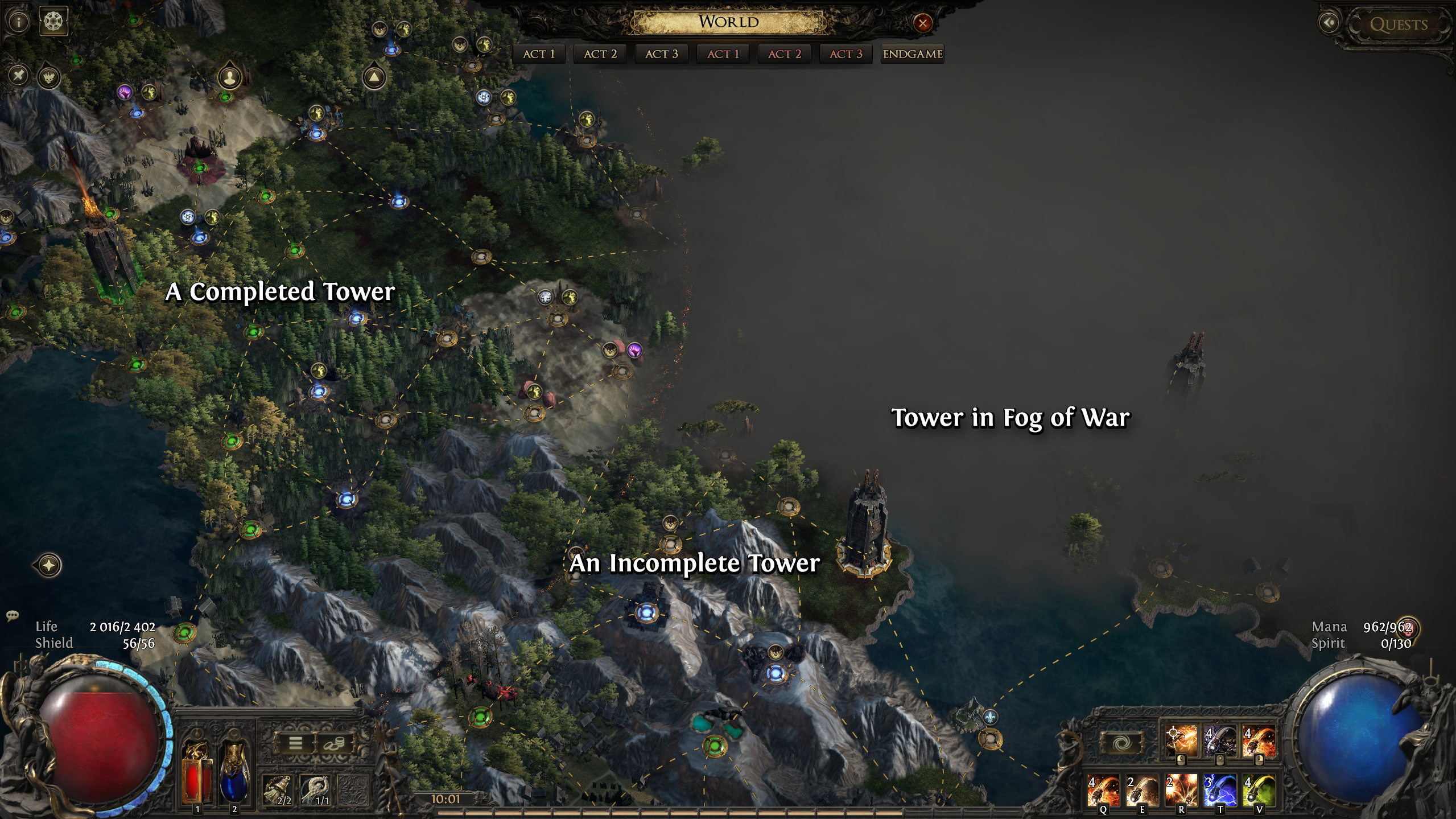 Within the Atlas, players will start noticing Towers poking through the fog of war with Waystones leading up to them. In order to reach these Towers, players will need to complete each Waystone preceding it