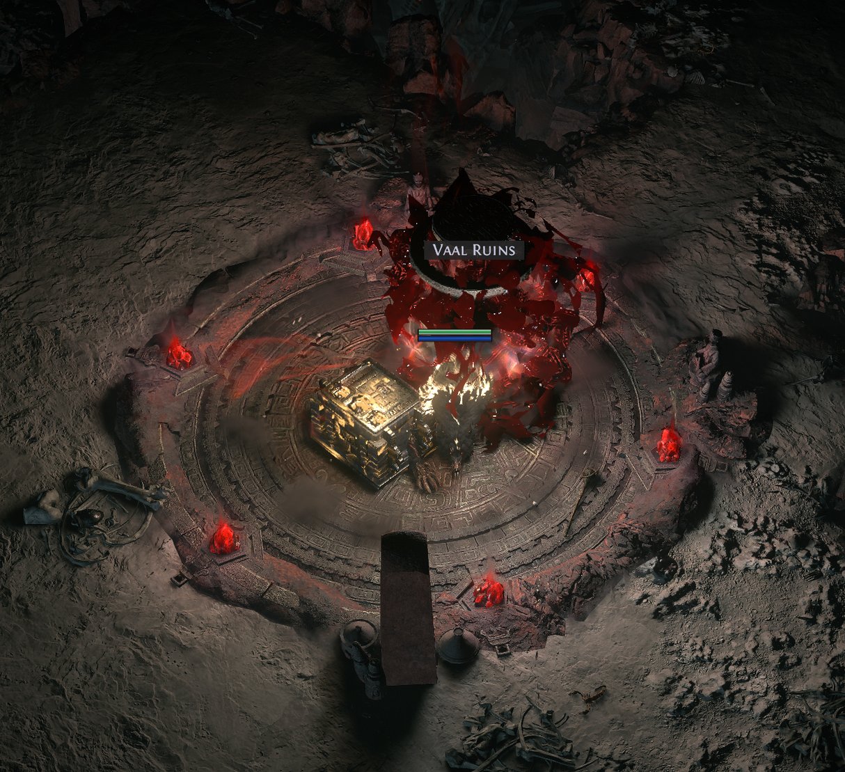 Atziri, the boss of the Vaal Temple lies at the very far end from where players enter. In order to unlock the Atziri fight, players must first defeat the Architect and complete the Royal Access Chamber and the connect their main path to Aziri's Chamber.