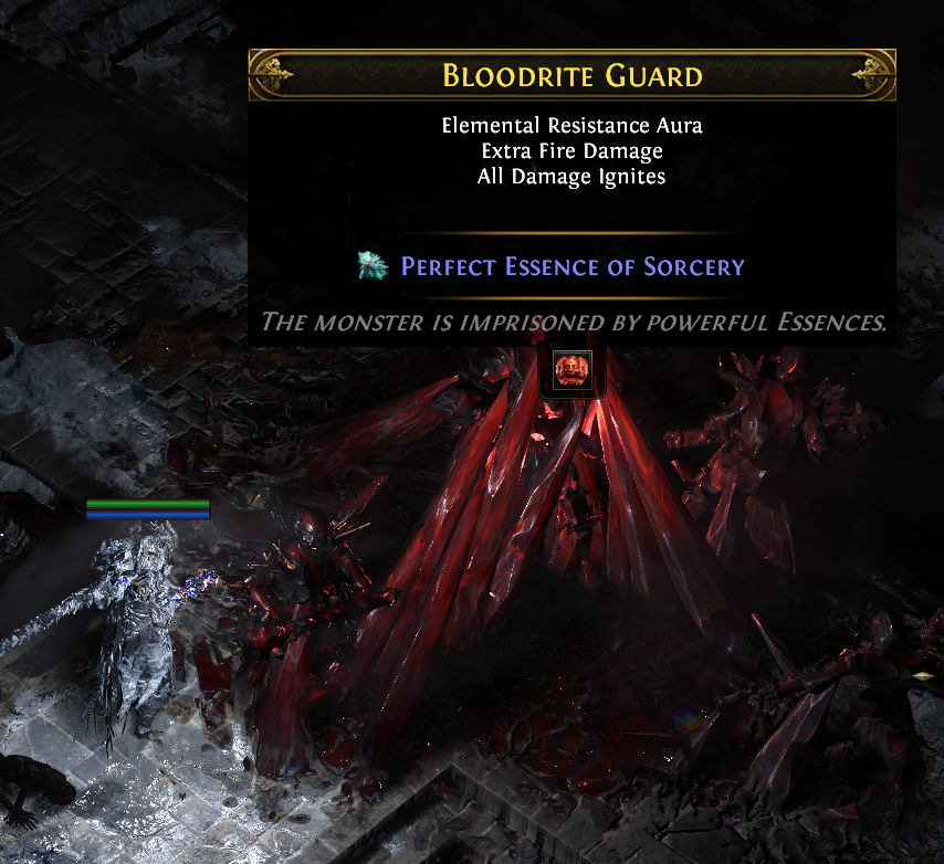 You'll start encountering Imprisoned Essence monsters within the first Act of Path of Exile 2's campaign. These are monsters frozen in time that you can release by clicking on them three times. The imprisoned monster will be empowered by the Essence it contains, granting it new abilities. If you are able to defeat the monster, it will drop the Essence it was empowered by.