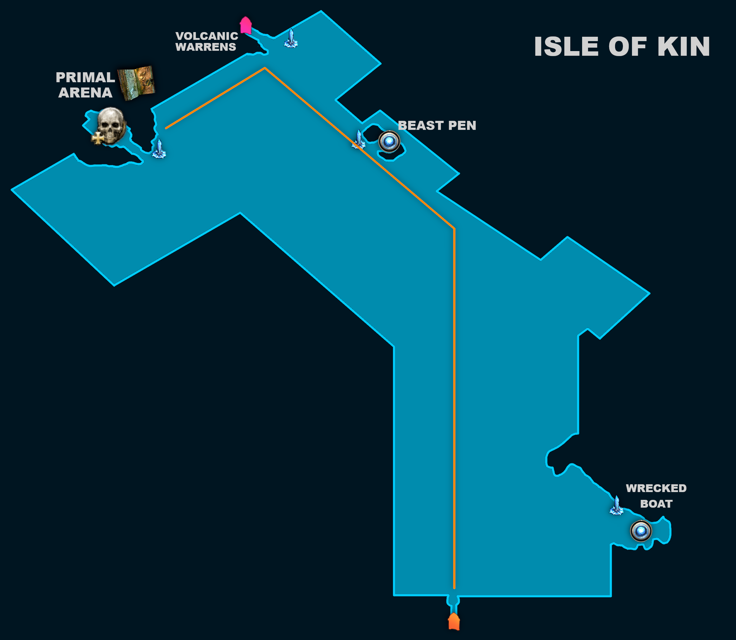 After leaving the dock, head in the opposite direction. If you hit a wall, follow that wall that takes you in the direction opposite of the exit. This area also contains the Primal Arena with a boss that can be defeated for a Book of Specialisation.
