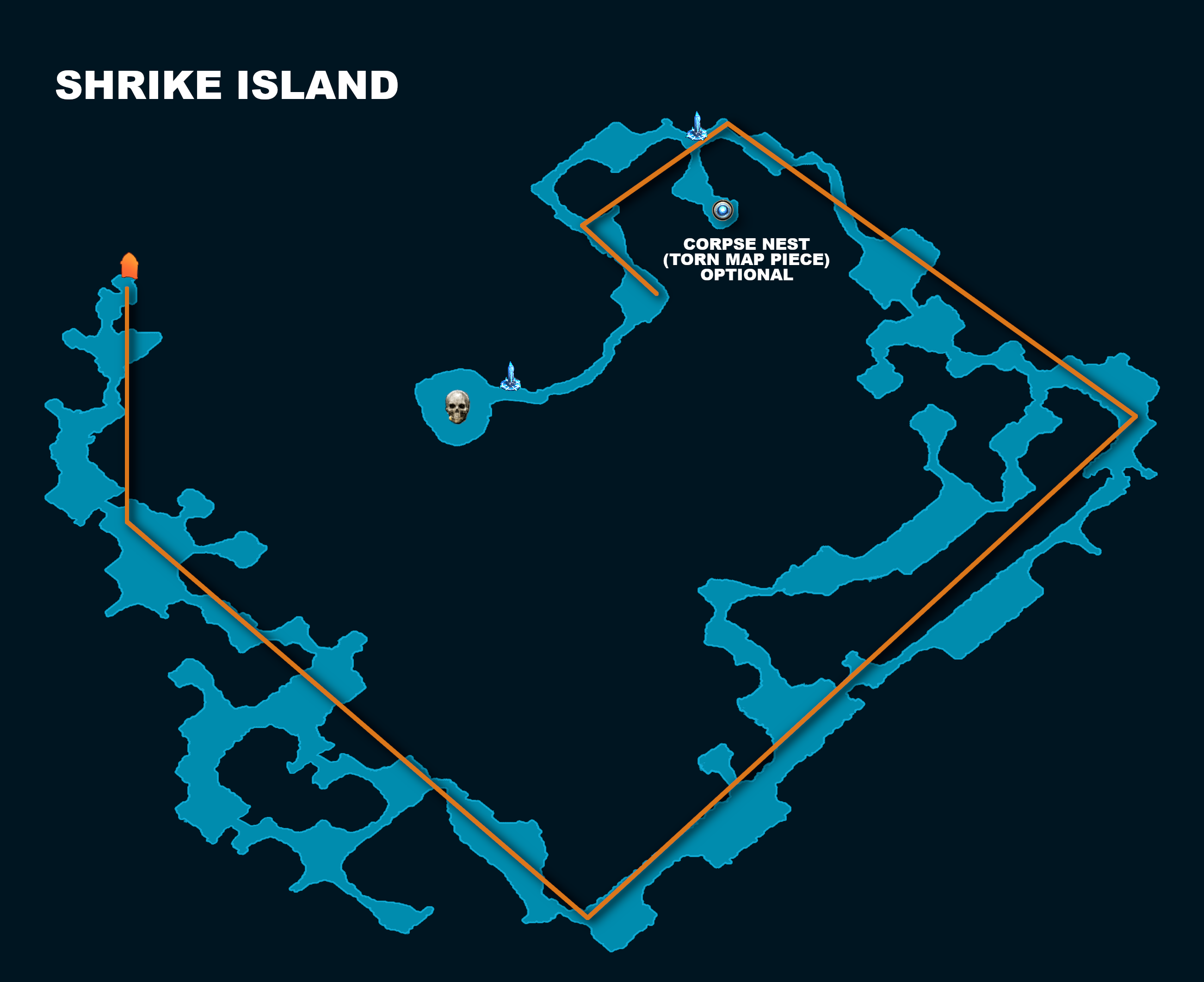 Shrike Island is an incredibly linear layout that will force you in the correct direction even if you have no idea where you're going. The Boss will be found at the end of the long and winding road.