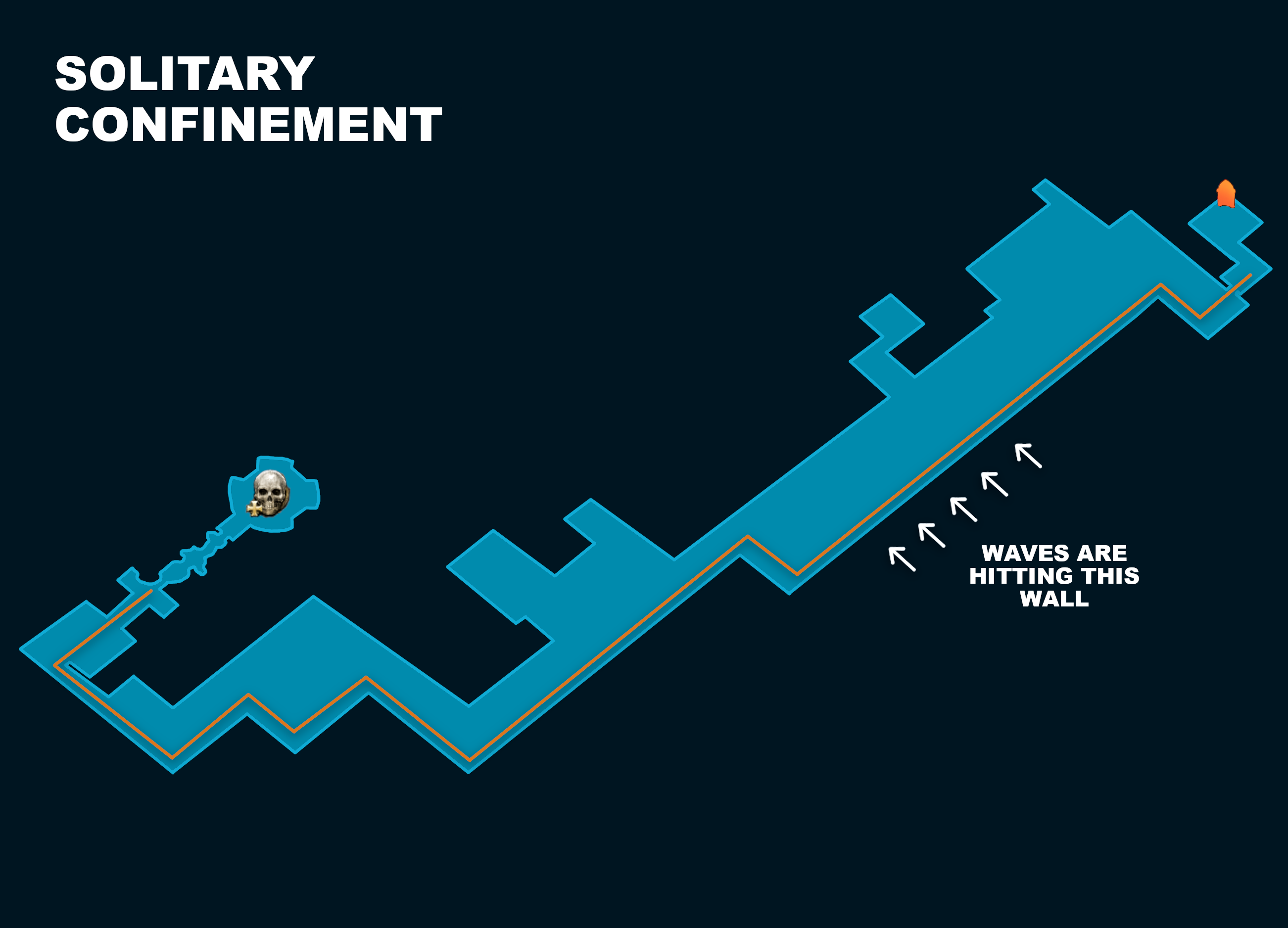 This area is 100% solved with a very linear layout. CrimsonCast's advice is: "Hug the wall that the waves are crashing into"