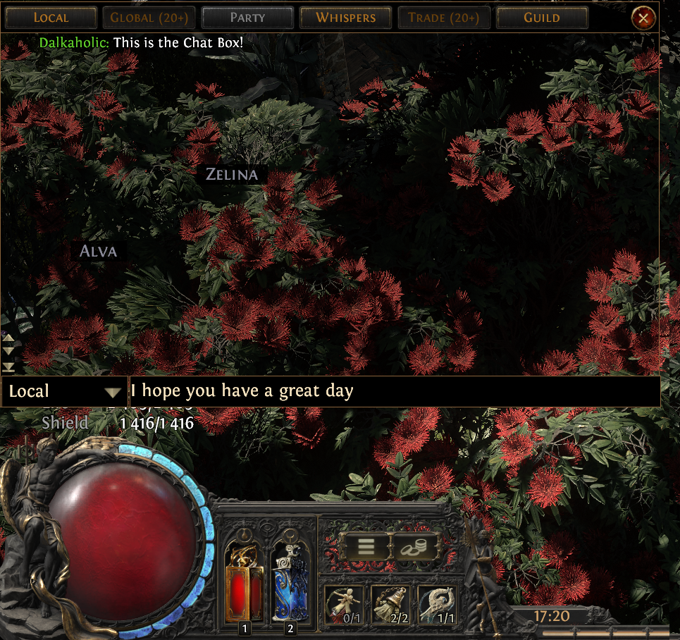 - Life and Energy Shield Orb: Displays your character's current Life and/or Energy Shield. The numeric values can be shown by hovering over the Orb or permanently displayed in Settings (explained later)