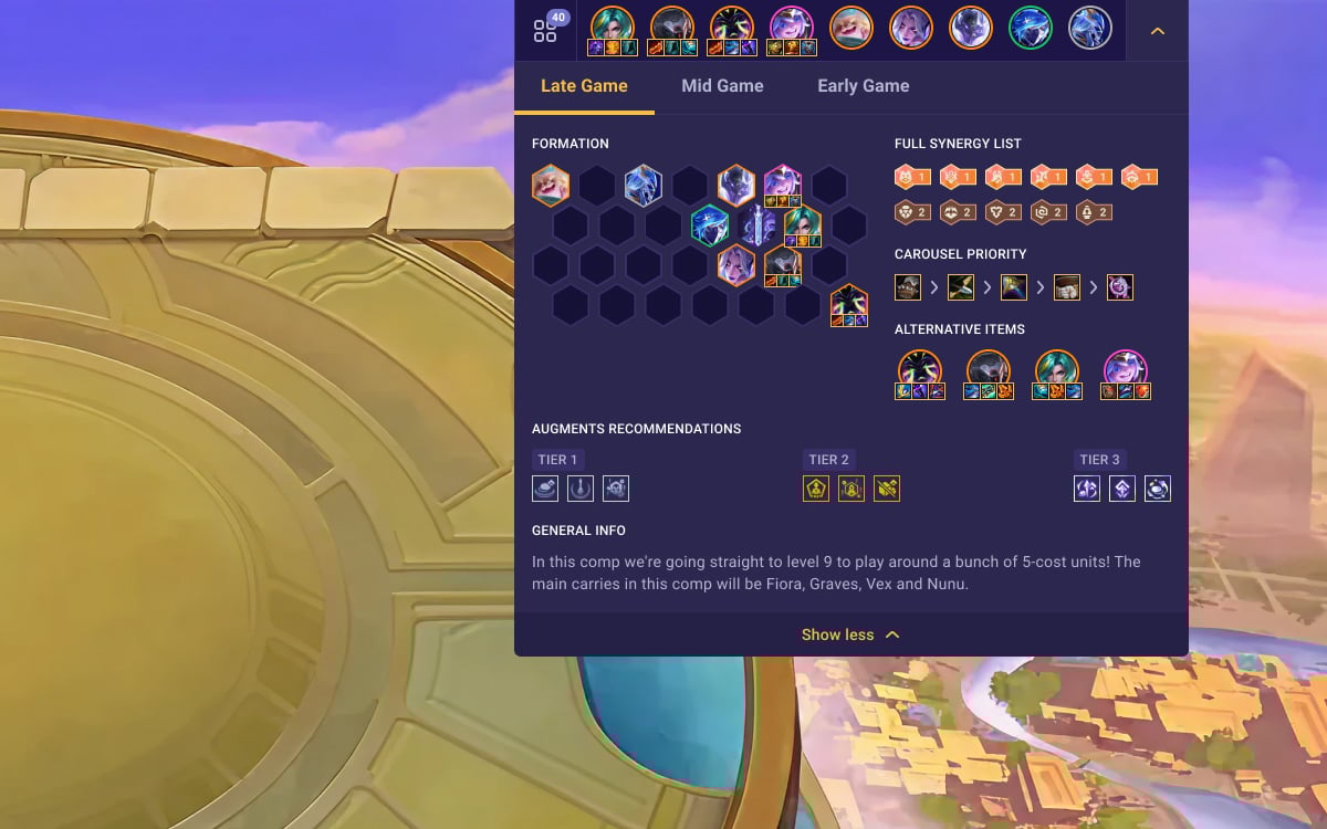The TFT Companion is your all-in-one companion that provides useful in-game recommendations, allows you to import your custom team comps, and much more to help you win more!