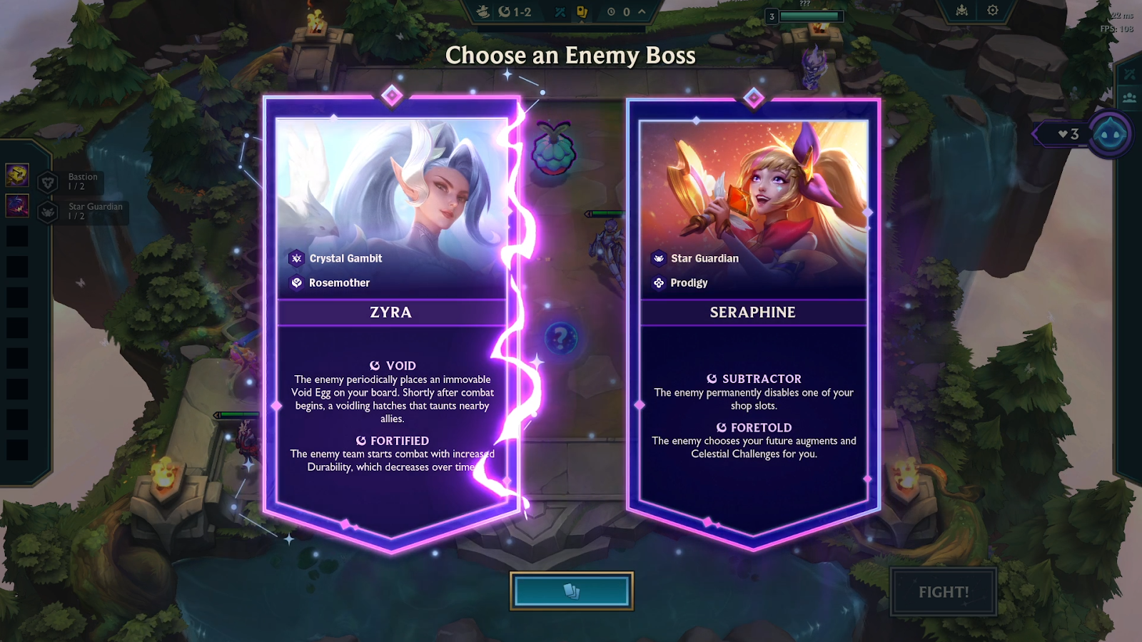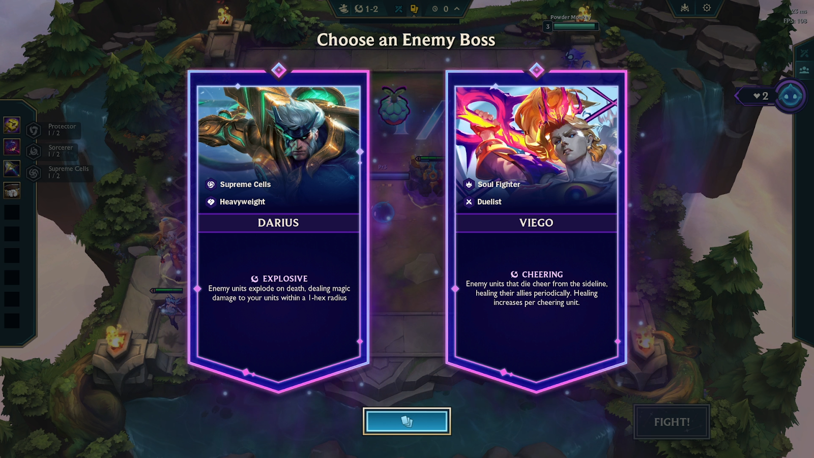 Here you’ll have to pay attention to the bosses modifier as each one has different effects, you’ll want to avoid Viego here as he has the cheering effect. This is bad for longer fights because when units are slain, they’ll start healing the remaining enemy team. Viego is a better pick if your comp has one-shot potential and can close out fights quickly.