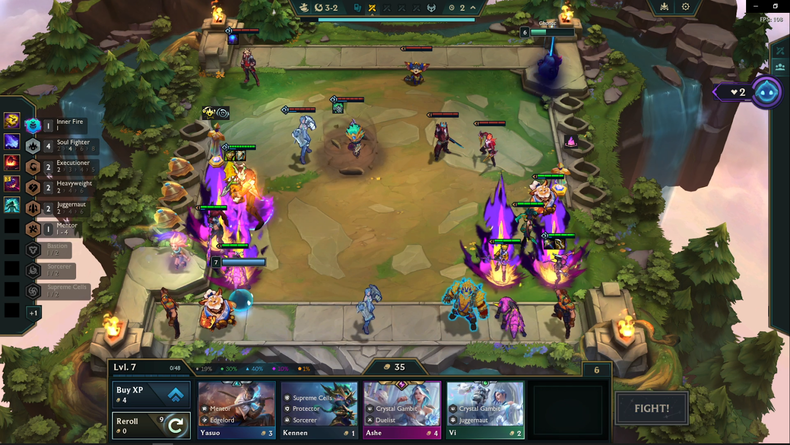 Be level 5 or 6 on 2-6 and roll for any upgrades if needed, look to activate 4 Soul Fighter