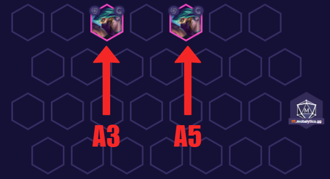 Make sure Akali is on either A3 or A5 Hex for backline corner access